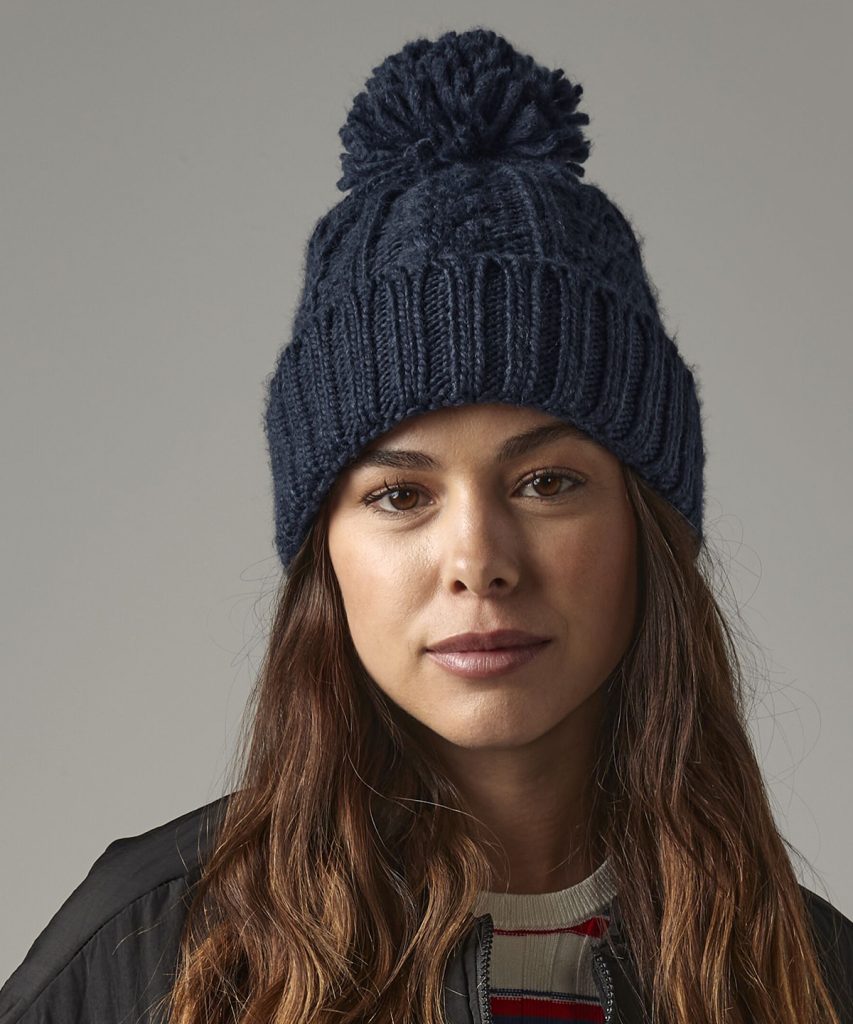 The cable knit melange beanie offers a snug and stylish statement for Winter. With a Suprafleece thermal band, it has a cosy hand-knitted feel that’s perfect for everyday comfort. The beanie is available in Autumn colours with self-coloured pom poms.