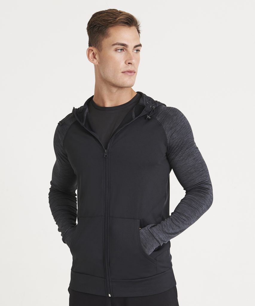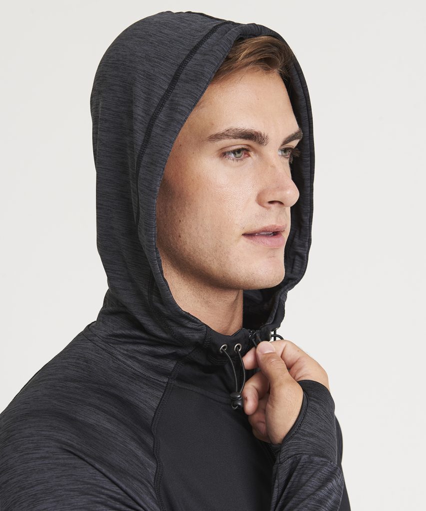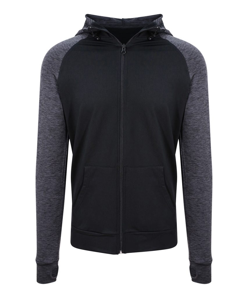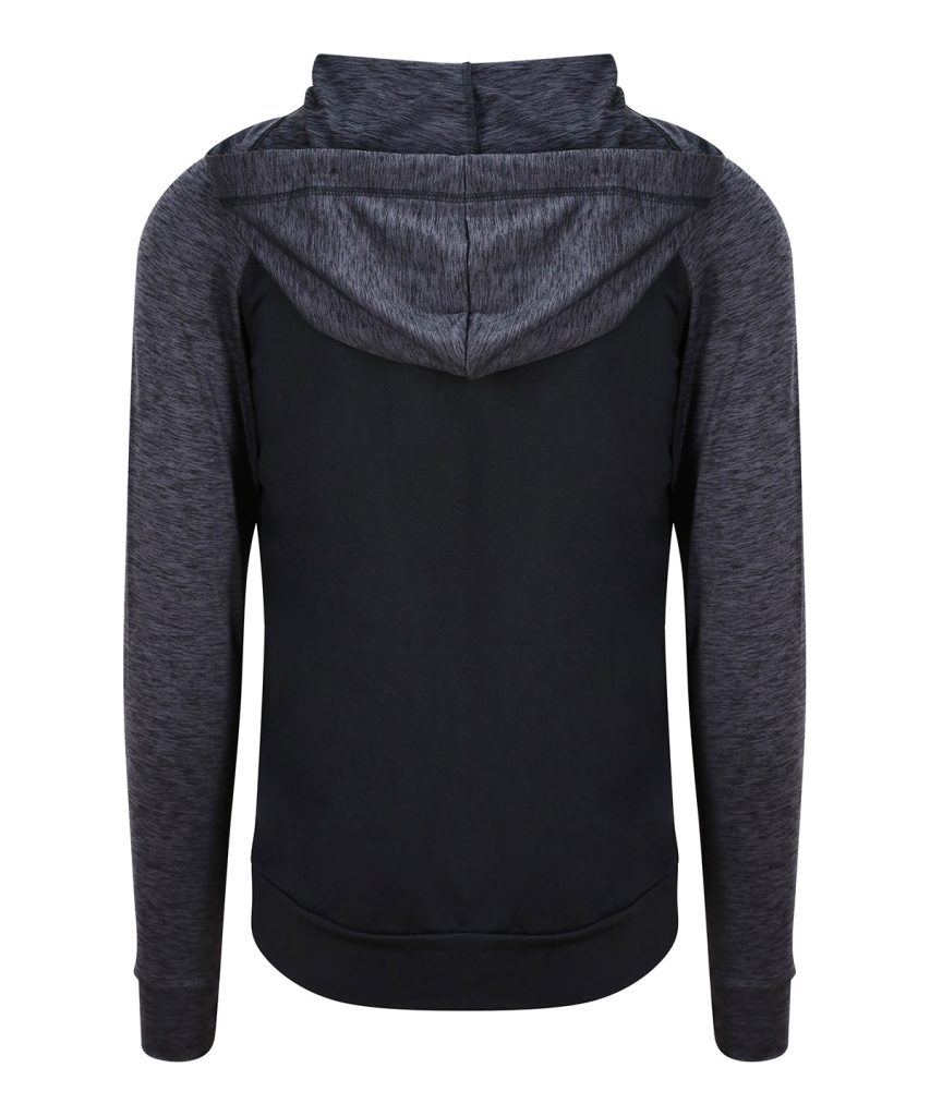 Push your limits with this innovative zoodie. Dual weights allows you to focus on your workout goals. When the nights get chilly or you need something to throw on to and from the gym, the cool sports zoodie combines wicking performance with lightly brushed fabric on the body. Adjustable attached hood protects from the elements while the raglan sleeves and thumb holes offer great range of motion.