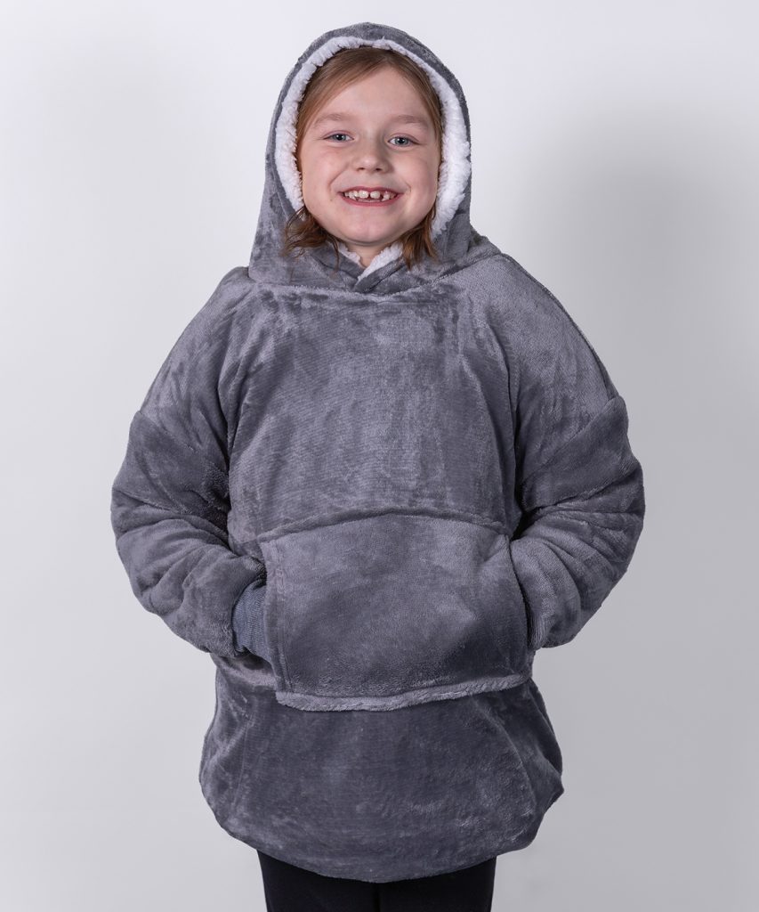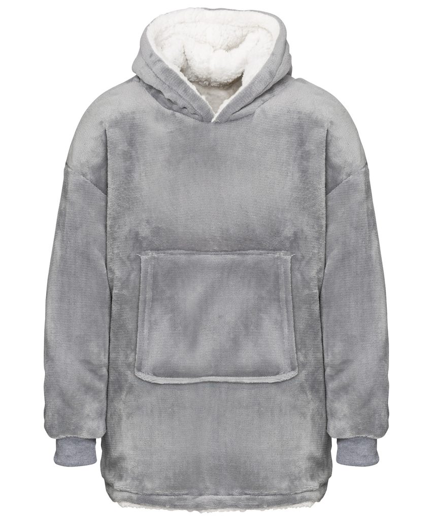Super-soft microfleece hoodie with snuggly warm sherpa lining. Oversized One Size fits most. Large pocket keeps your hands warm. Reversible choose your favourite way.