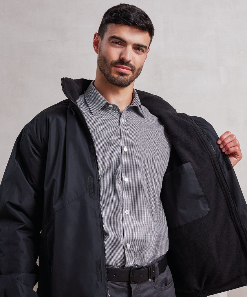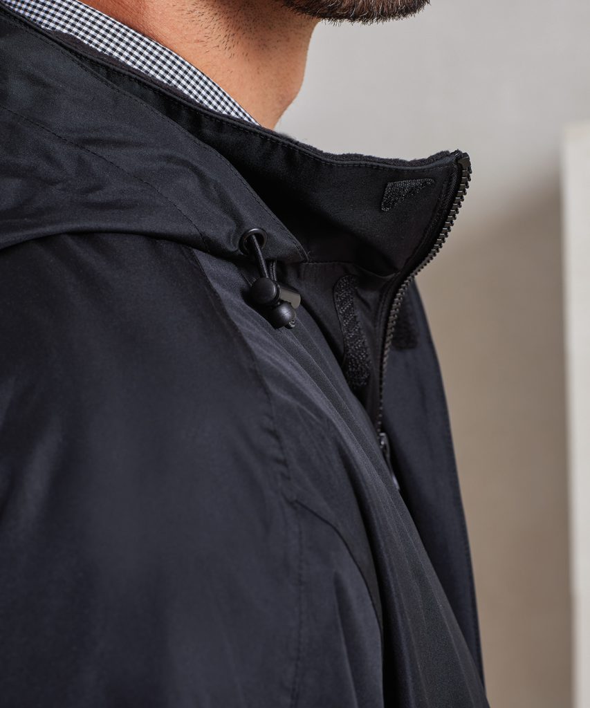 The Selsey is made from Premiers Hydrochecker fabric for a weatherproof jacket. Designed to keep you dry with fold-away drawcord hood, hook-and-loop-fastening storm flap, taped seams and adjustable cuffs. Padding through the body for insulation, with a cosy microfleece inner layer featuring a hidden zip for embroidery access. Keep your essentials safe with zipped fleece-lined pockets and a useful inner patch pocket. The Selsey is a great workwear jacket for professionals who need protection from the elements whilst doing their job. Available in two colours and in a wide range of sizes.