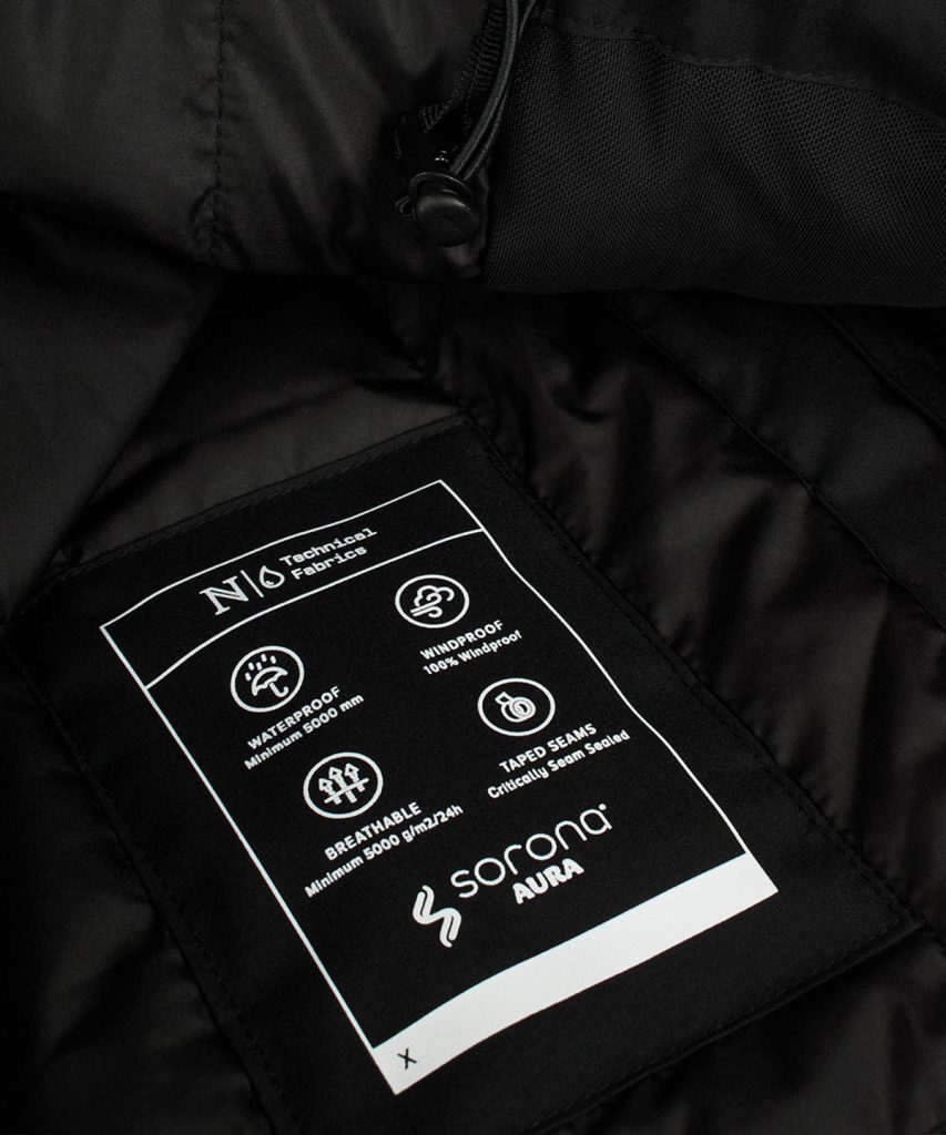 Outer fabric: 100% Recycled polyester with PU coating. Lining: 100% Recycled polyester. Padding: 100% Polyester: Sorona Aura (AURA insulation is made from 30% Bio-based material) |
