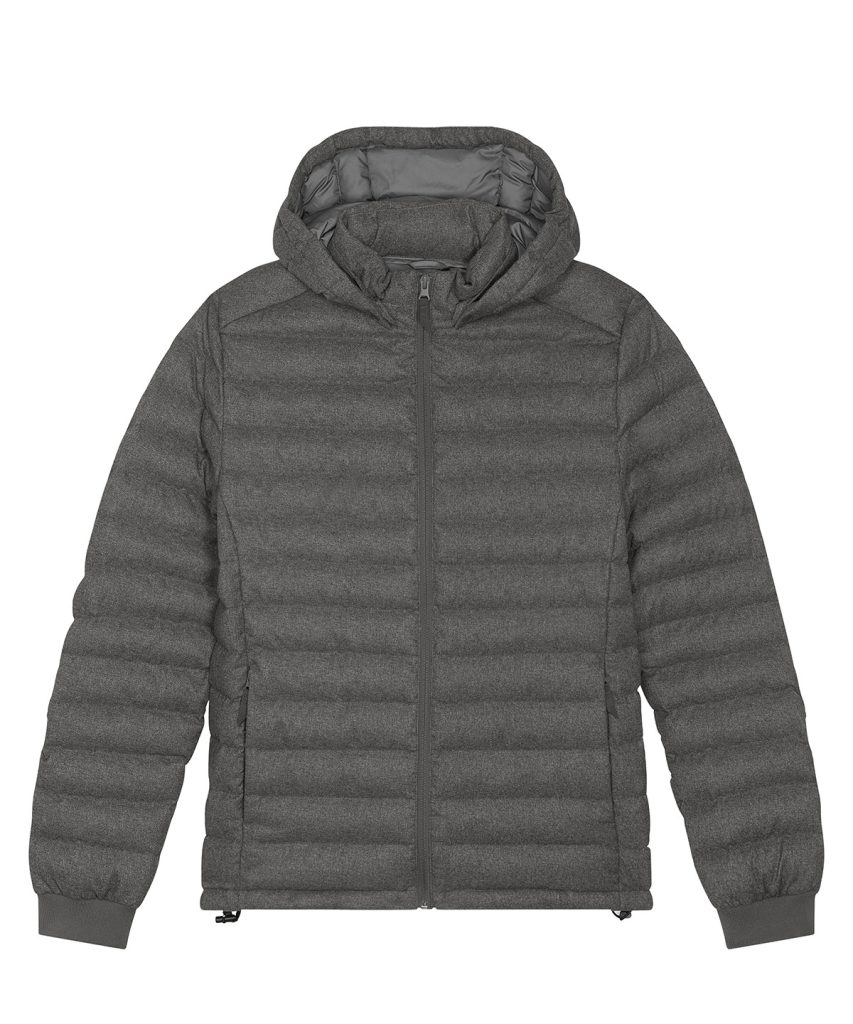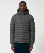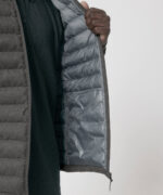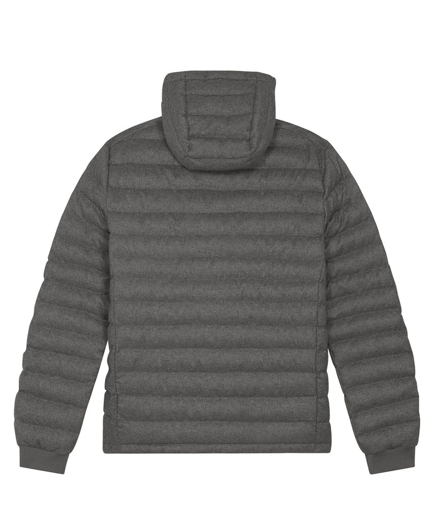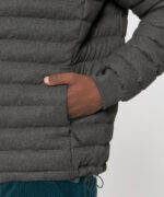This wool-like mens padded jacket is fully quilted with side panels for a better shape.