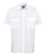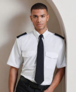 A men’s short sleeved pilot/ security shirt with a stiffened collar and tabs for epaulettes on shoulders for those who need a more authoritative approach to their workwear.