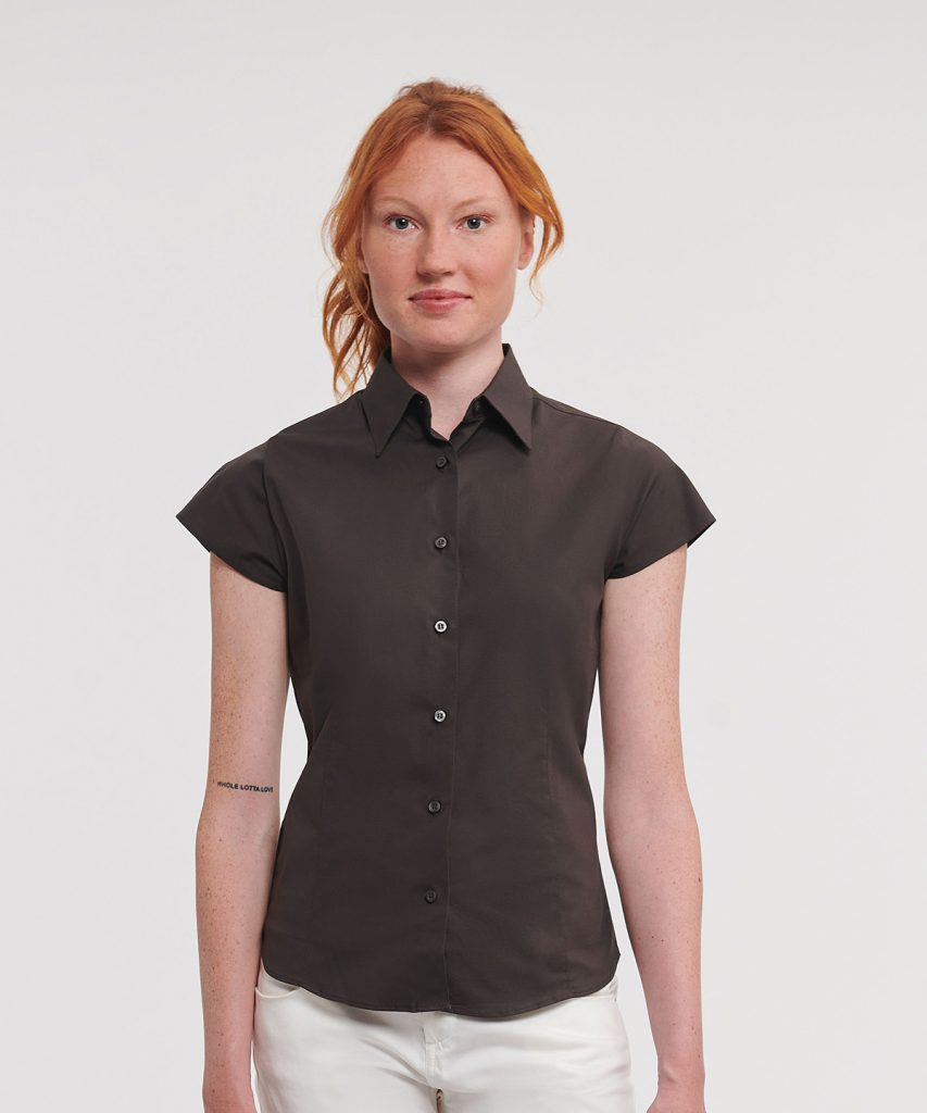 Russell Collection – Womens Short Sleeve Easycare Fitted Stretch Shirt J947F