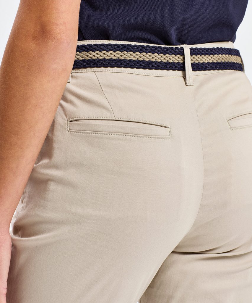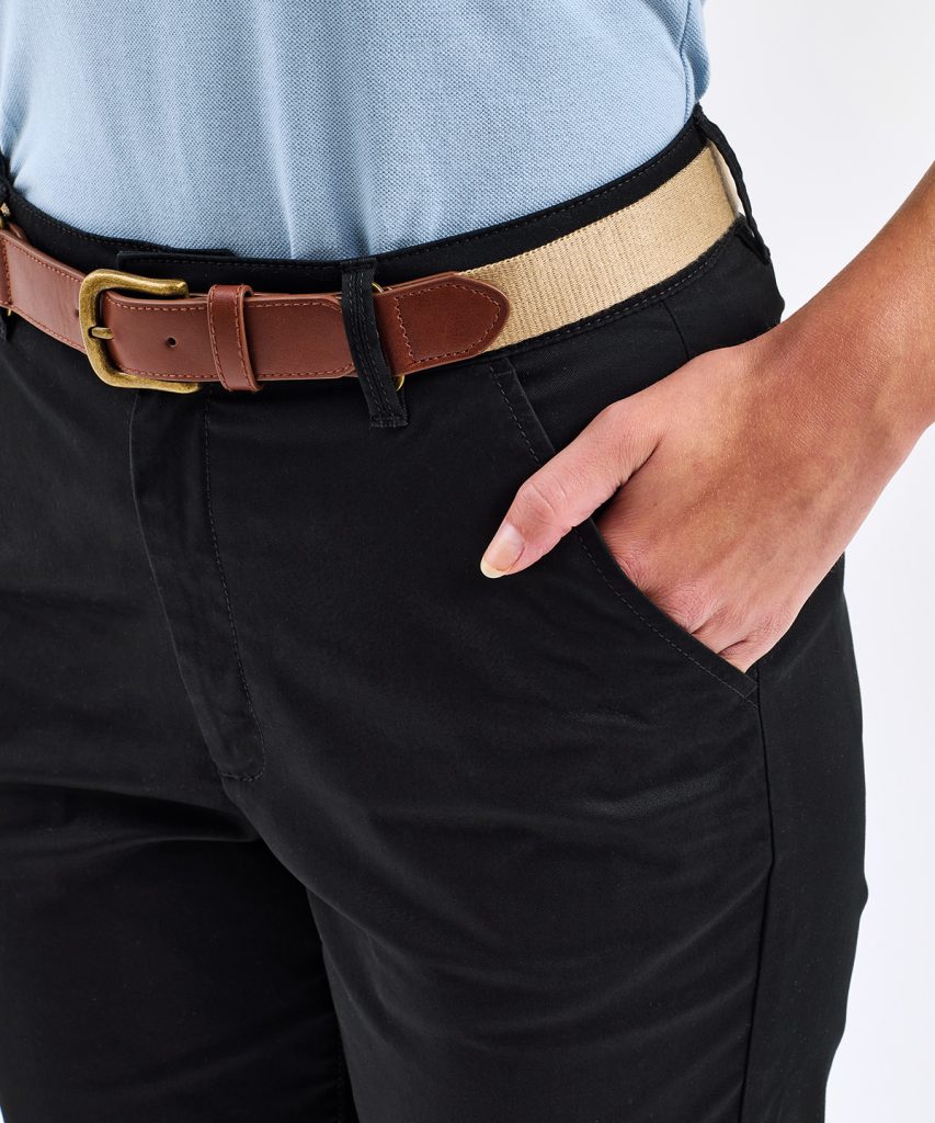 Discover the perfect blend of style and comfort with the Womens lightweight chinos from Asquith & Fox! Boasting a slim fit and mid-rise design, theyre crafted from a cotton and elastane blend for comfort and flexibility. With convenient front and back pockets, along with a secure zip fly and button fastening, these chinos deliver a polished smart-casual look. Dress them up with a polo and blazer and add an Asquith & Fox belt for a finishing touch.