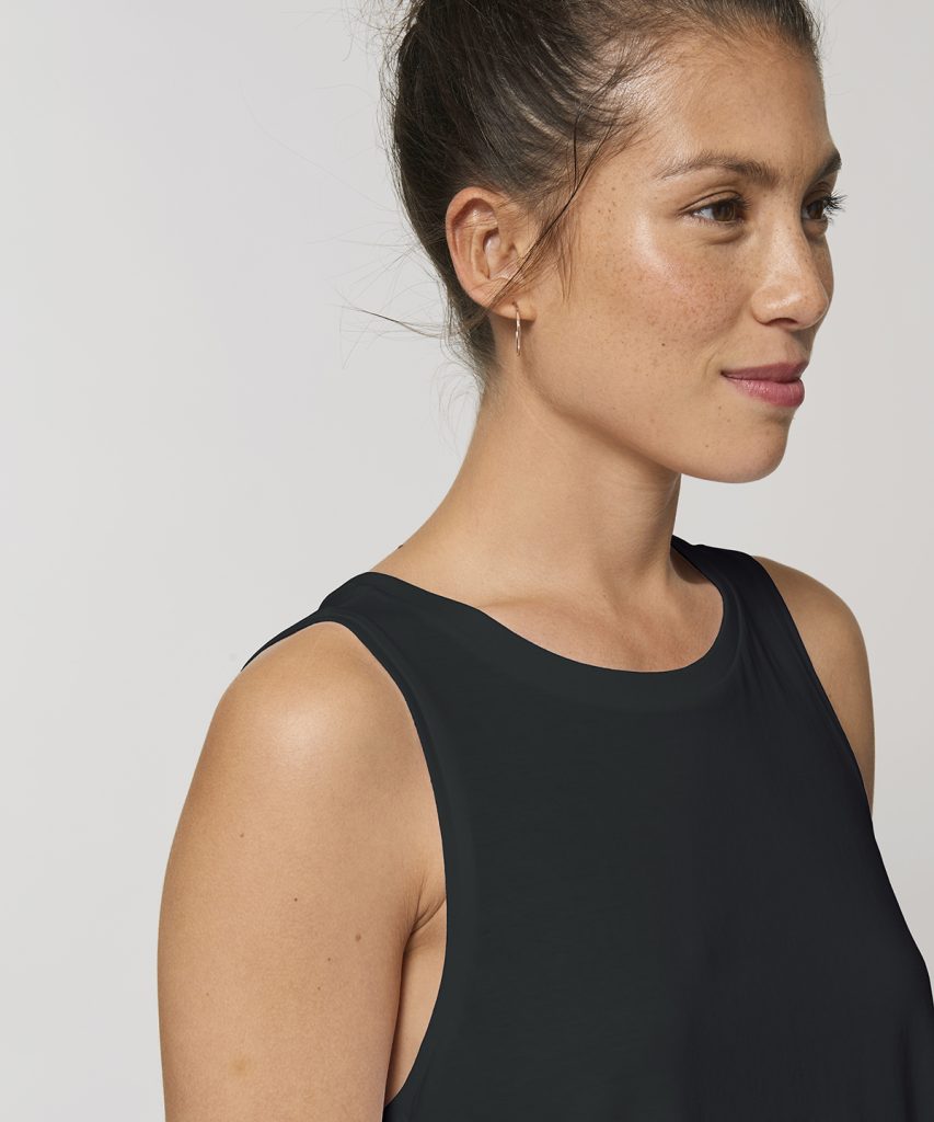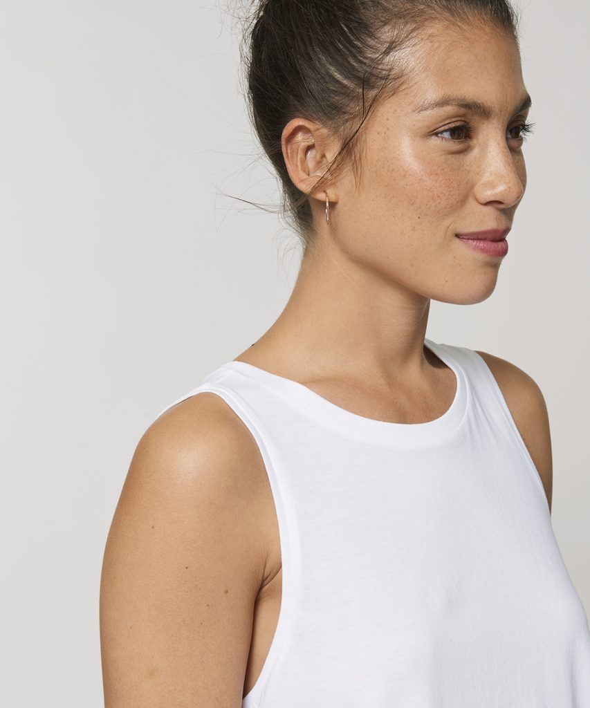 The women’s sleeveless top is cut in premium 120gsm 100% organic cotton, and is complete with our signature soft-hand feel.
