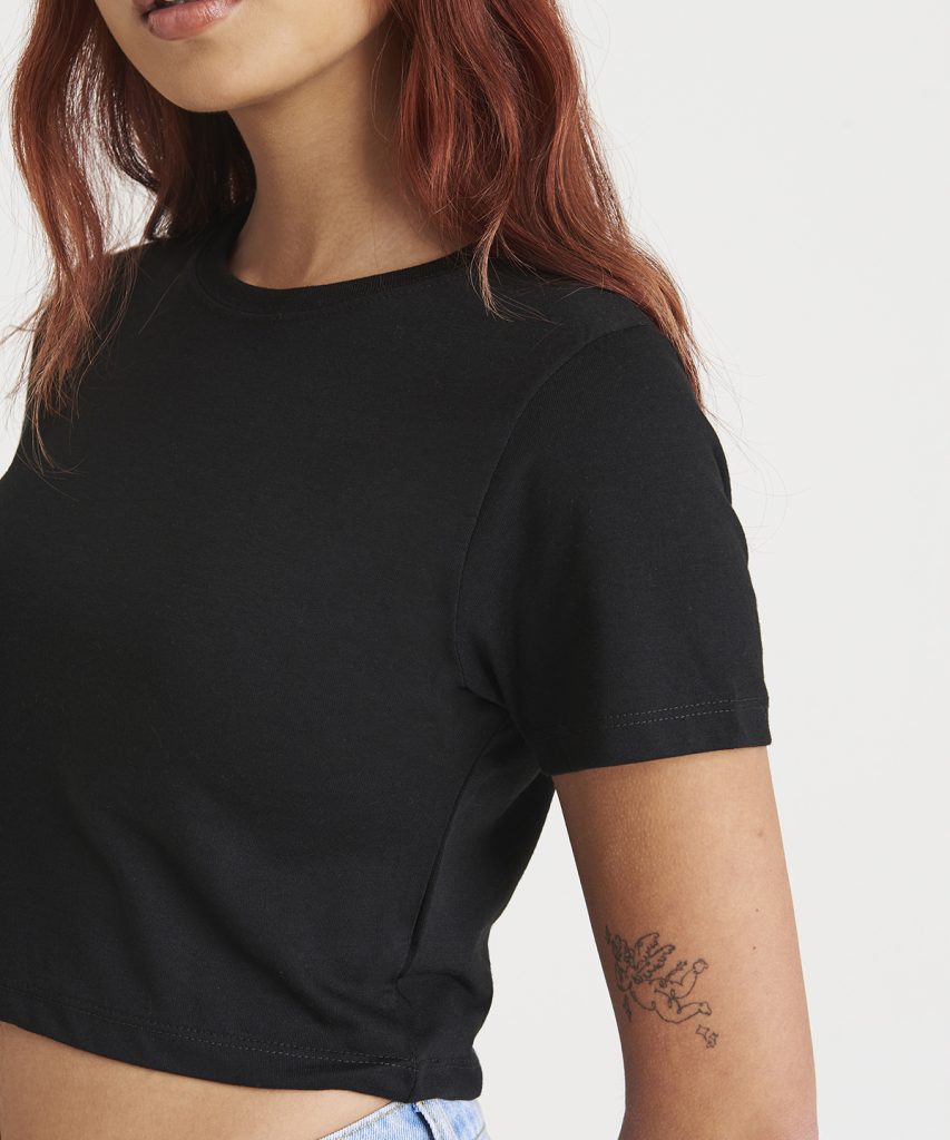 Make a statement with this cropped style tee, great for layering or wearing on its own. The cropped triblend features a crew neckline and has been finished with a flattering girlie fit, available in staple neutral colours. This contemporary style is the ideal garment for printing and embroidery.