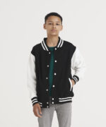 This kids varsity jacket is made in a sporty American style. It features a classic fit with contrast sleeves with excellent front popper fastening.