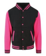 Get the varsity look with this classic American inspired jacket. Contrast sleeves and poppers complete this look which is fashioned from our heavyweight fabric which is ideal for decoration.