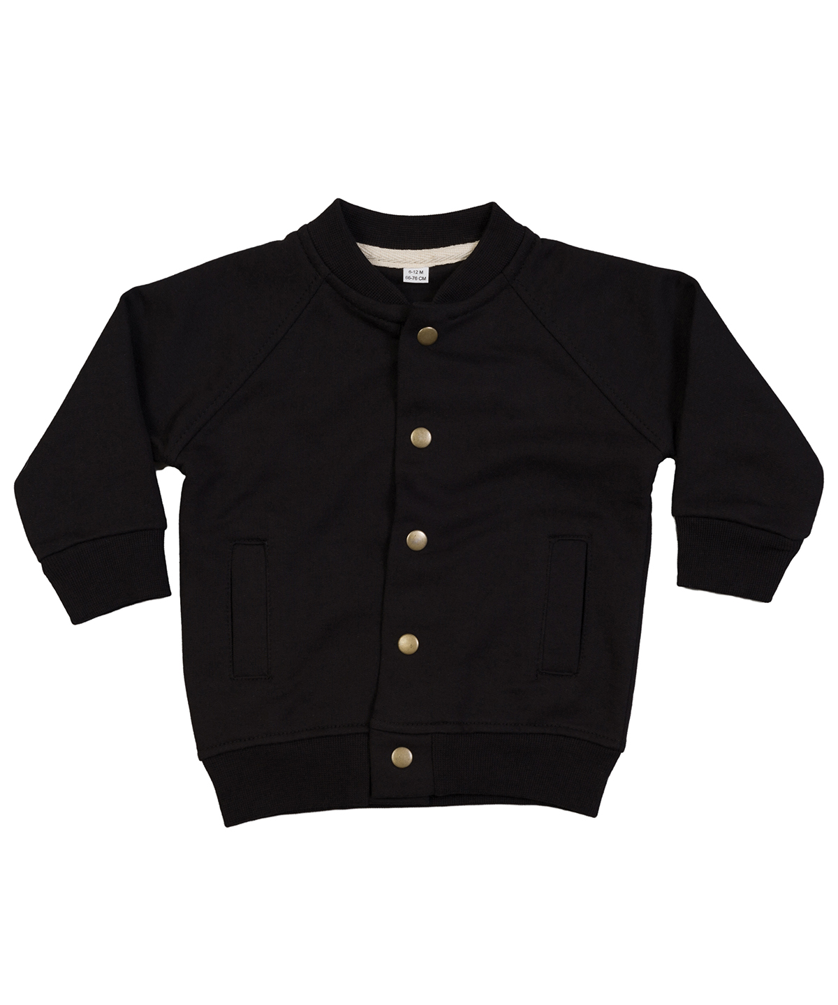 Your little one will be the most stylish kid on the block with this statement bomber jacket made from organic cotton with recycled polyester. The antique look button front along with ribbed collar hem and cuffs finish off the retro style look.