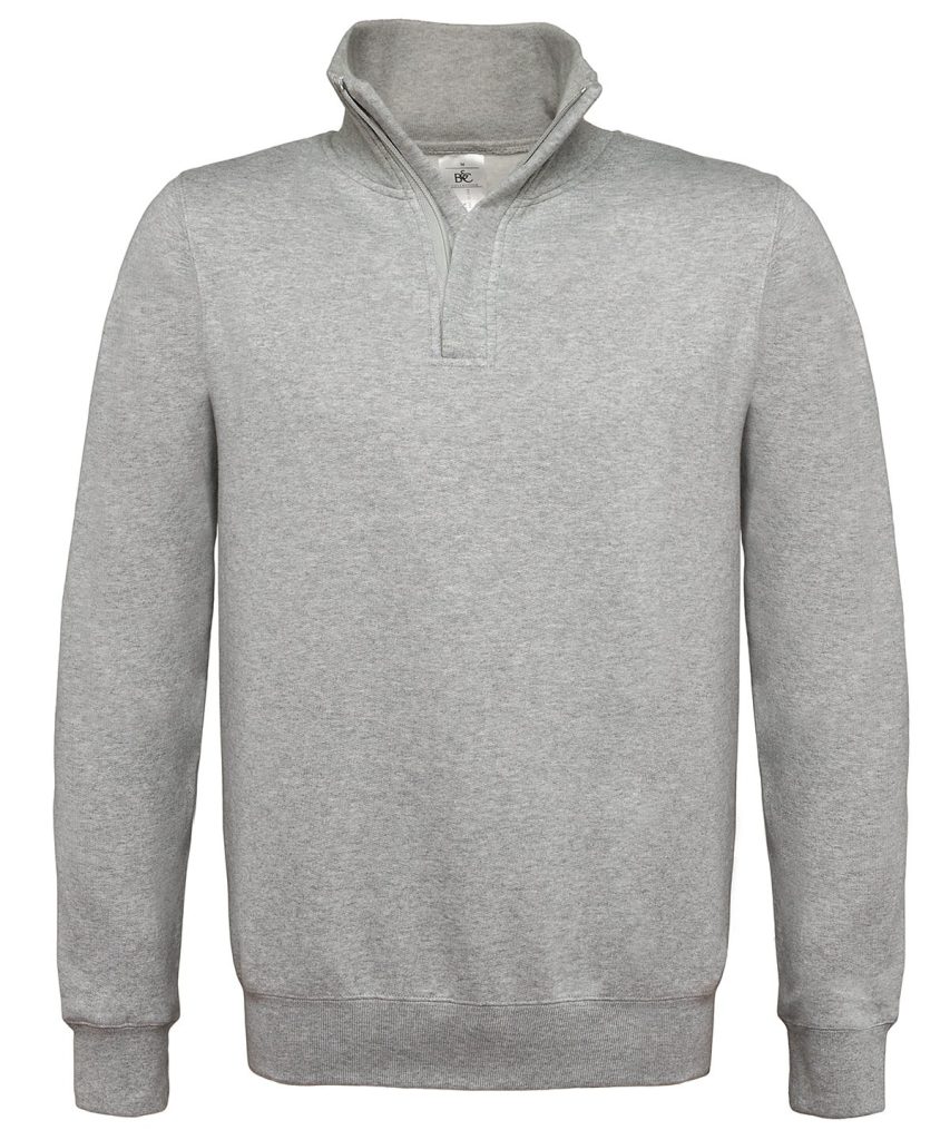 The cotton rich composition (80% cotton, 20% polyester) of the B&C ID.004 basic sweatshirt gives you the efficient blend of decoration result and wearer comfort. Featuring a 1/4 zip on its high 1×1 rib collar and a 2-side covered placket to avoid skin contact with zip.