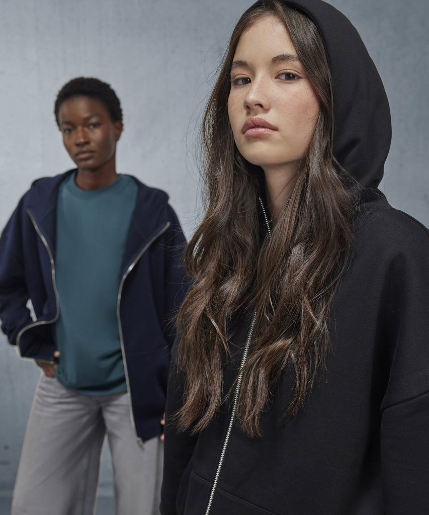 The B&C Influence zip hood is the functional expression of urban style, its unisex, oversized design and unique high collar creating a striking, minimalist, streetwear look. Made from cotton and recycled polyester, its robust fabric has exceptional printability, thanks to a 100% cotton face; and with a label-free neck, its great for customisation. Functional street style brought to life!