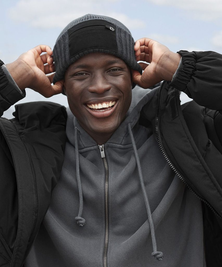 The zipped front patch pocket on this heavyweight beanie creates a unique utility aesthetic, whilst embodying a technical outlook. The engineered crown offers superior comfort and creates a silhouette with structure for functional street and sport styling. A chunky double-layer knit and thick turn-up cuff provide optimum warmth. Contains certified recycled polyester.