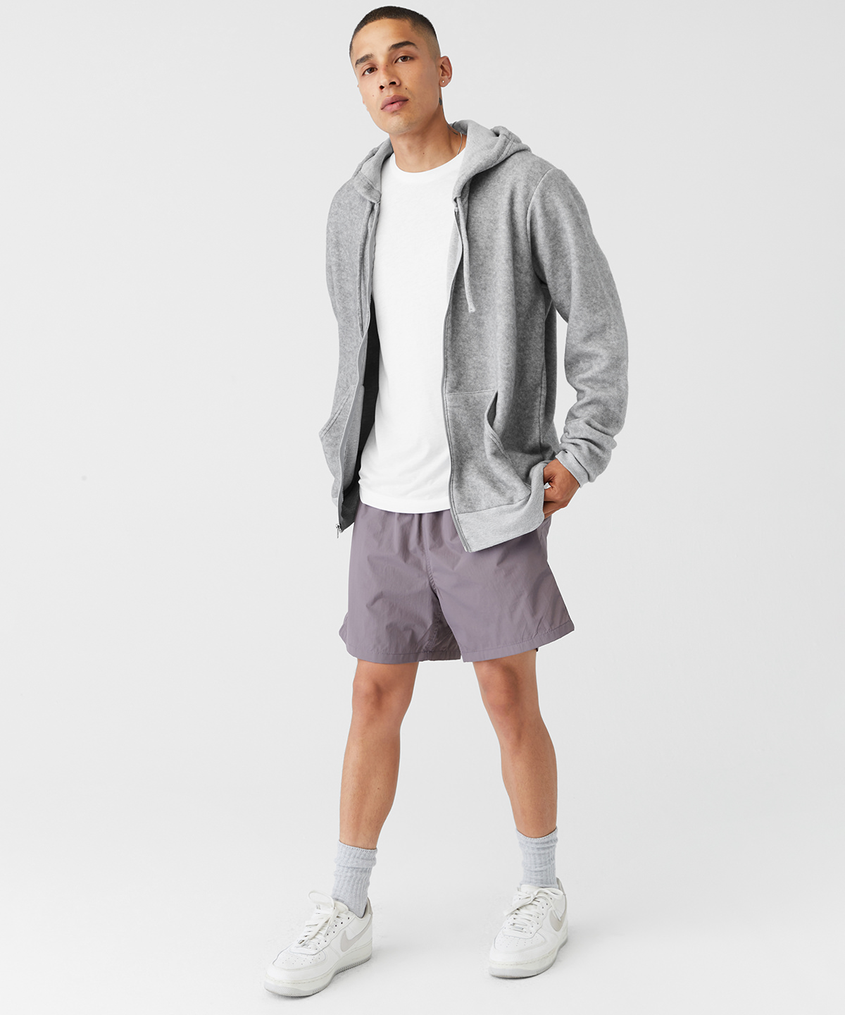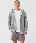 This new sueded fleece full-zip hoodie is a year-round essential. With two-tone ribbing, front pockets, all in a super soft exterior, look no further for your next cosy, easy-to-layer, fashion-forward look.