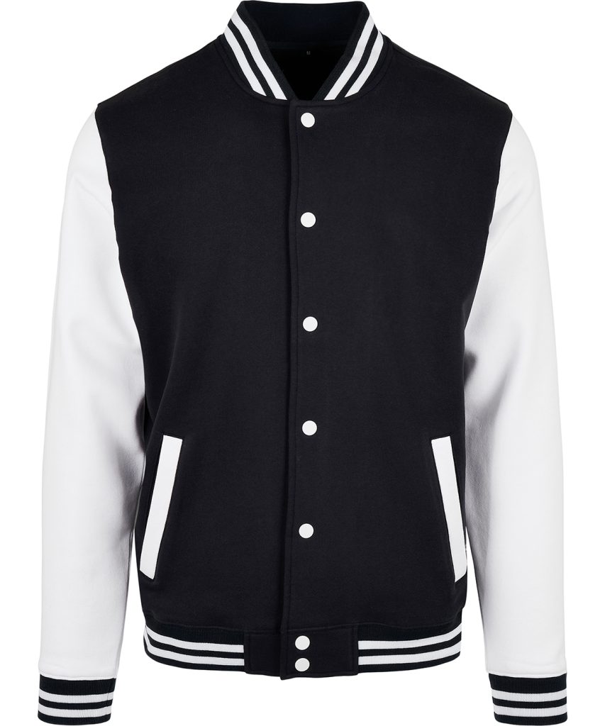 The basic college jacket will make any look sporty. The ribbed collar, casual regular fit and rib-knit elements on the sleeves and hem give it that typically collegiate style. The metal buttons on the full-length button placket will be sure to catch your eye. Welt pockets top off the college jacket. The cotton-blend jacket can be customised in many ways. This item is manufactured in a FAMA Certified factory. FAMA stands for Facility and Merchandise Authorisation and is a high standard production certificate.