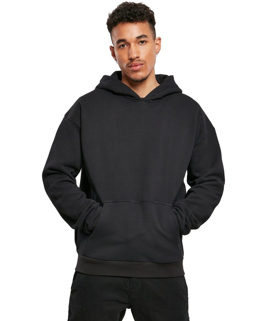This ultra-heavy mens hoodie combines the features of a classic sweater with cosy French terry. Complementing the look is its casual urban fit, so the hoodie is cut even more generously than an oversized fit and has extra-long sleeves. Adding further comfort and style are the kangaroo pocket, large hood and wide ribbed cuffs on the sleeves and hem. This hoodie can be personalised with printing or embroidery.