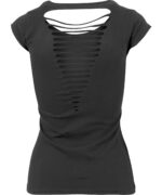 The Women’s back cut tee is a feminine shirt with cool v-shaped cut-outs in the back. A large rounded scooped neckline and short sleeves complete the look. The lightweight single Jersey is ideally suited for embellishment and printing.