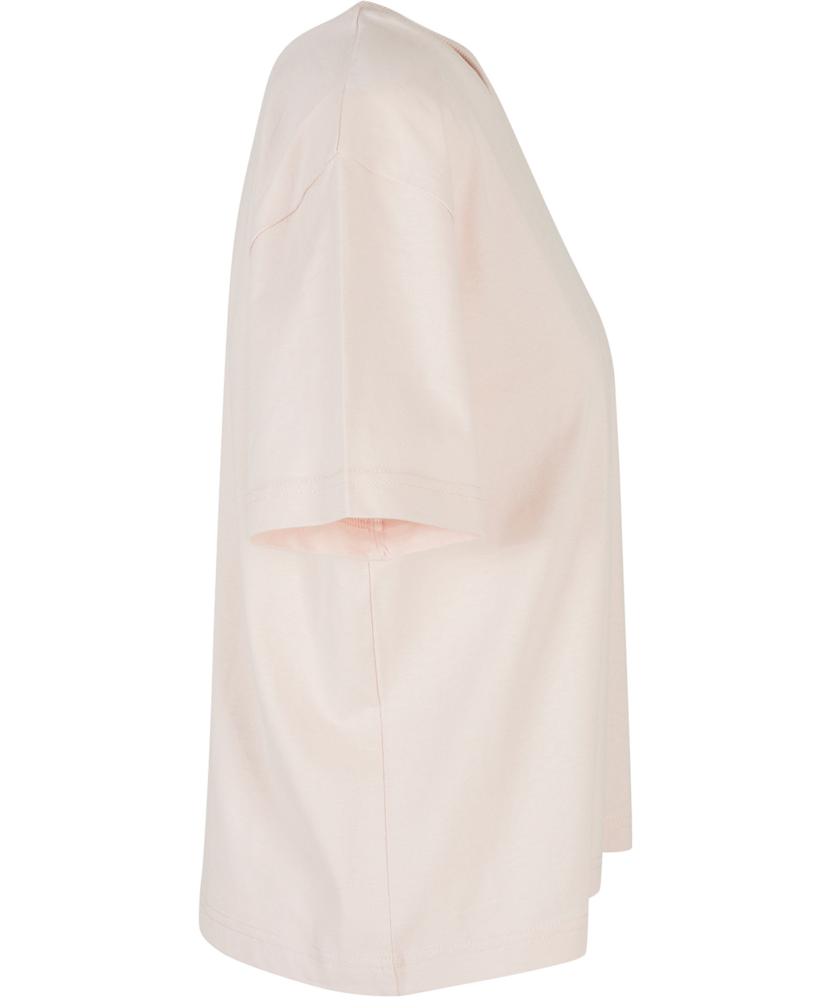 This short-sleeved, single-coloured womens tee radiates a simple and calm style with a casual oversized cut and dropped shoulders. The cotton fabric ensures perfect comfort for the wearer, while the ribbed crew neck provides another style highlight. Its suitable for further refinement with flock printing, screen printing or embroidery.