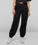These womens sweatpants sit high on the waist and are equipped with an elastic waistband. Their trendy balloon style is derived from elastic cuffs. and the design is rounded off by two handy side pockets. The balloon sweatpants are made from a functional cotton and polyester mix, which comes together in a loose fit, and they can further be refined via flex or screen printing.
