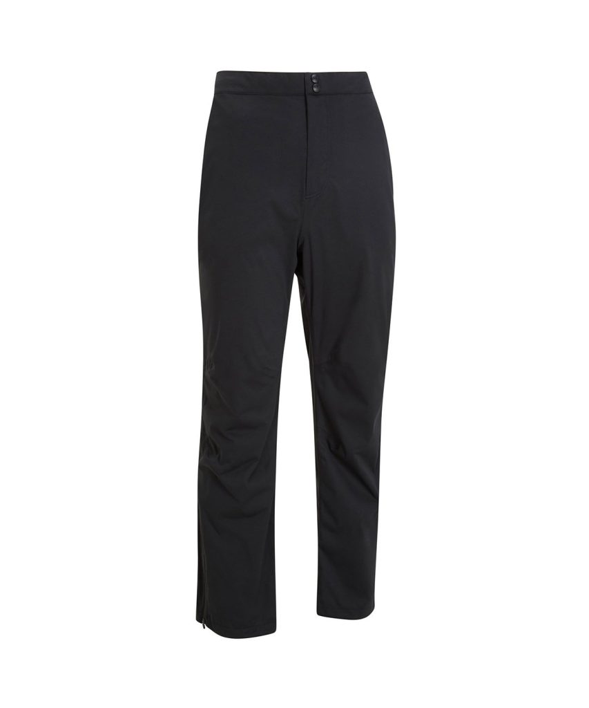 Fully-seamed waterproof trousers with water-resistant zips. Chevron print on bottom of leg.