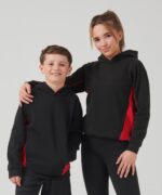 Make a statement in this stylish hoodie. Featuring contrast colour sleeve panels, a large kangaroo pocket and flat contrast drawcord, this style is both practical and on-trend.