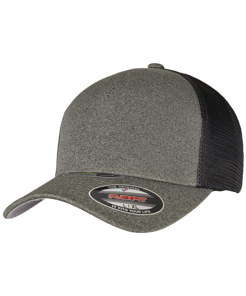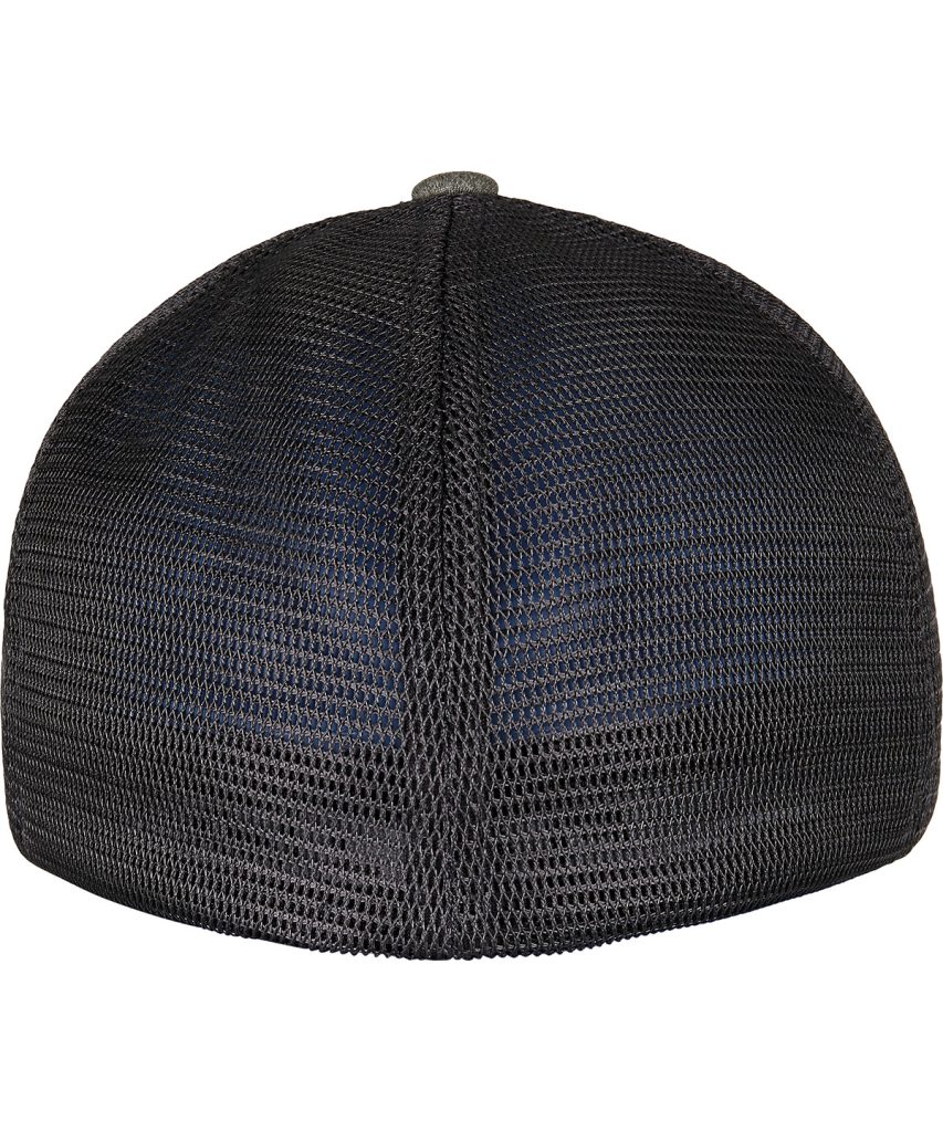 This two-tone trucker cap is made for greatness the entire front is seamless and shows a high-quality mottled color design. The back contrasts with a fitting and comfy polyester mesh. The stylish look of the cap is rounded off by a pre-curved and eightfold quilted visor. An integrated Flexfit ribbon ensures an optimal fit, making any other form of closure unnecessary. The masculine cap is a succeeded accessory for every day.