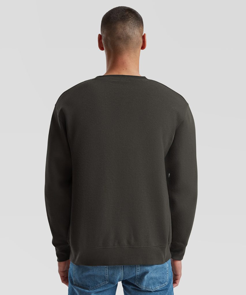 With a 100% cotton face ensuring perfect printing and embroidery results and a range of colours to choose from, Fruits Premium set-in sweat is suitable for all kinds of application. This super-soft garment features an inner brushed fleece and single Jersey back neck tape for comfort, while the cotton/elastane neck, waist and cuff ribs provide added warmth.