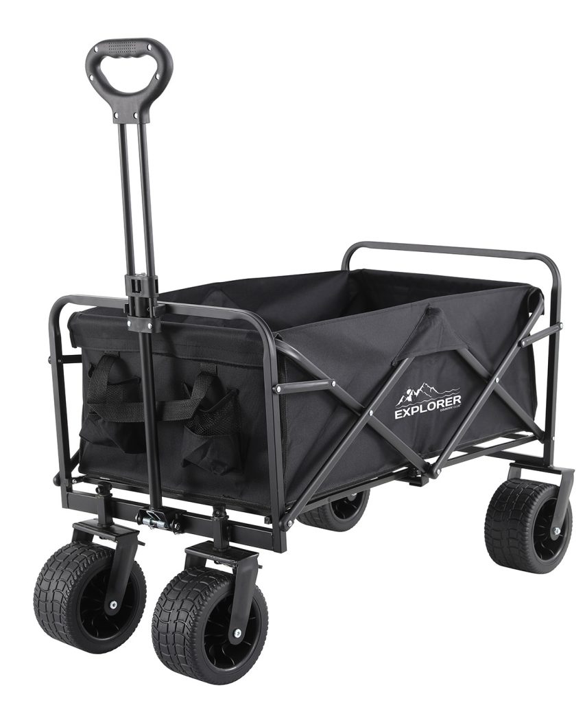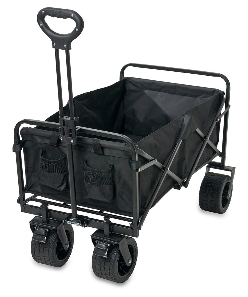 This foldable cart offers so much versatility! A convenient cart for festivals, holidays, day trips, business, and much more! Seamlessly folds and packs away, making it easy to store and great for travelling when you have limited space. A durable build with 8″ wide wheels means you can tackle festival fields and day trips out with confidence.
