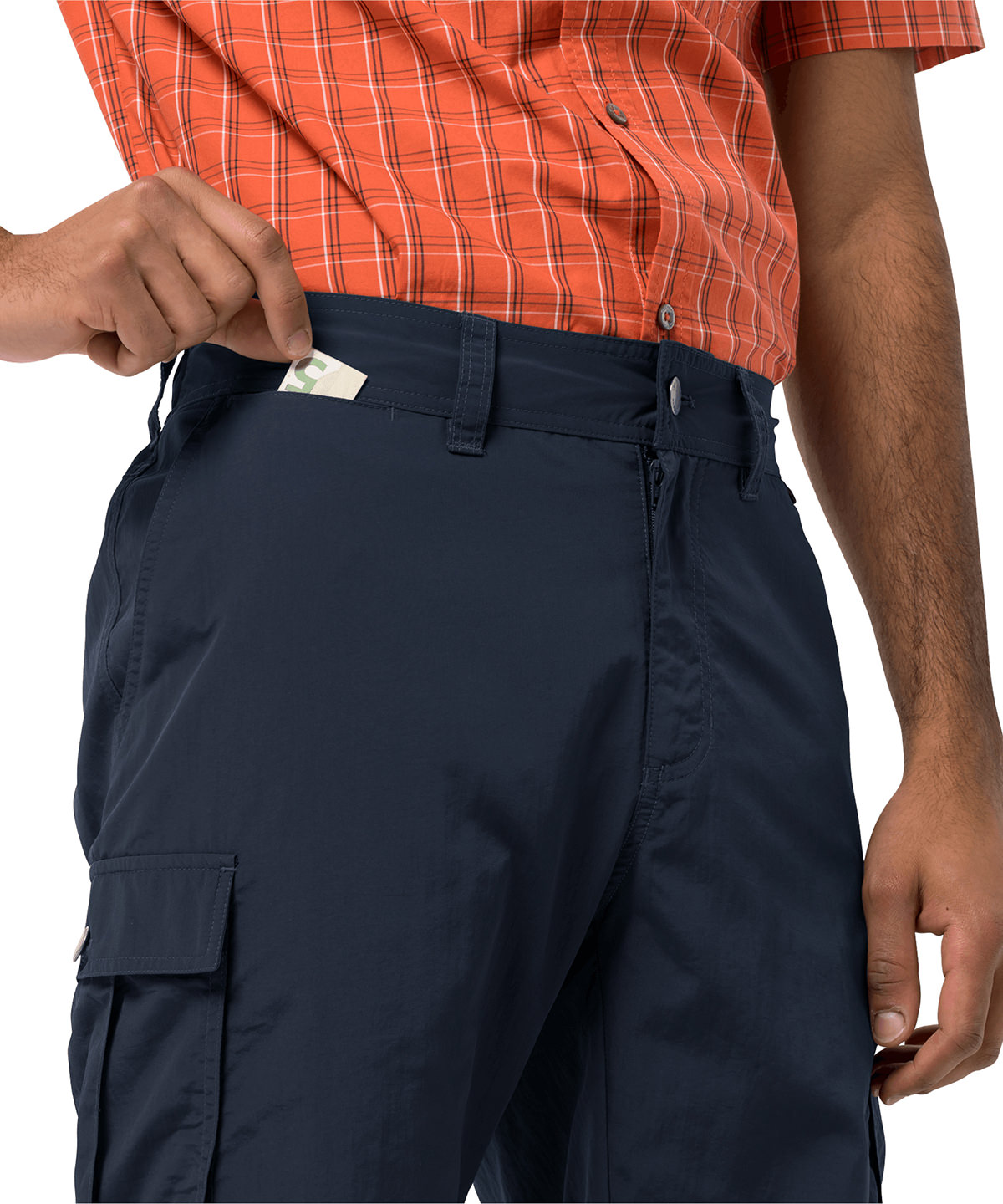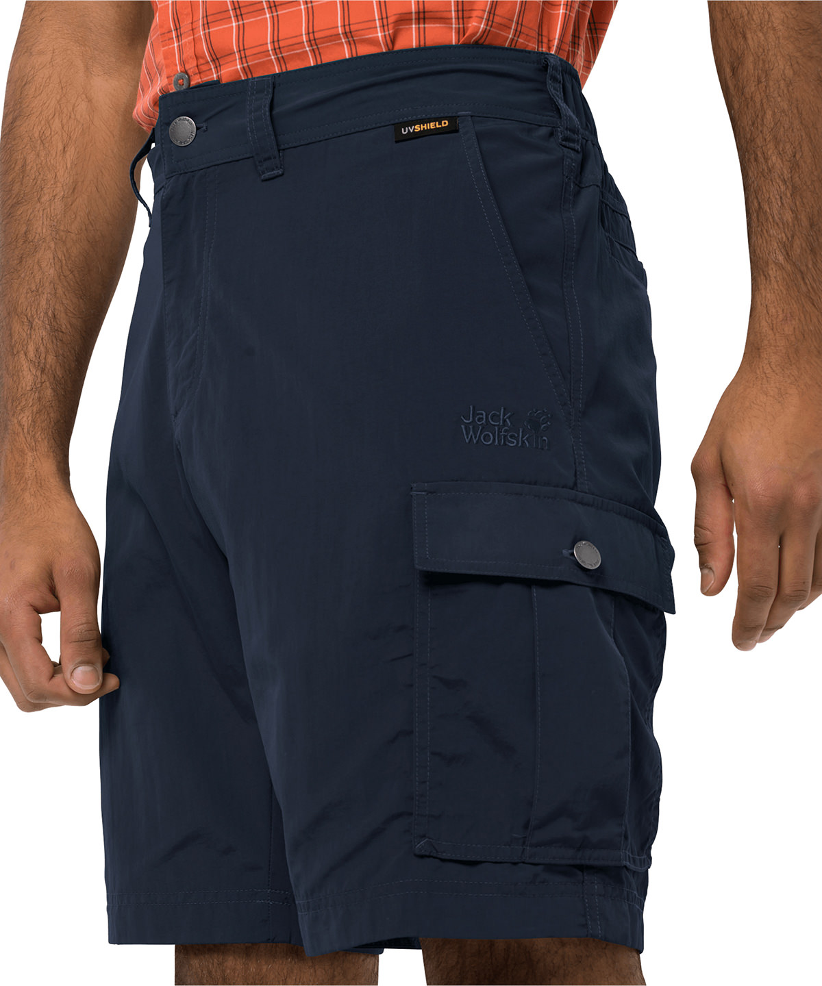 36 degrees in the shade, dusty roads, not a cloud in the sky and its good that youre wearing your cargo pocketed shorts (OL). These lightweight shorts are ideal for hiking or travelling in hot weather; and, with six pockets for your essential little items, you might not even have to carry a day pack. The thin SUPPLEX fabric protects you from UV rays, and if you work up a sweat or get caught in a shower, it dries again in no time. UV protection (UPF 40+) (DIN EN 13758:2007, EN 13758-1:2001+A1:2006).