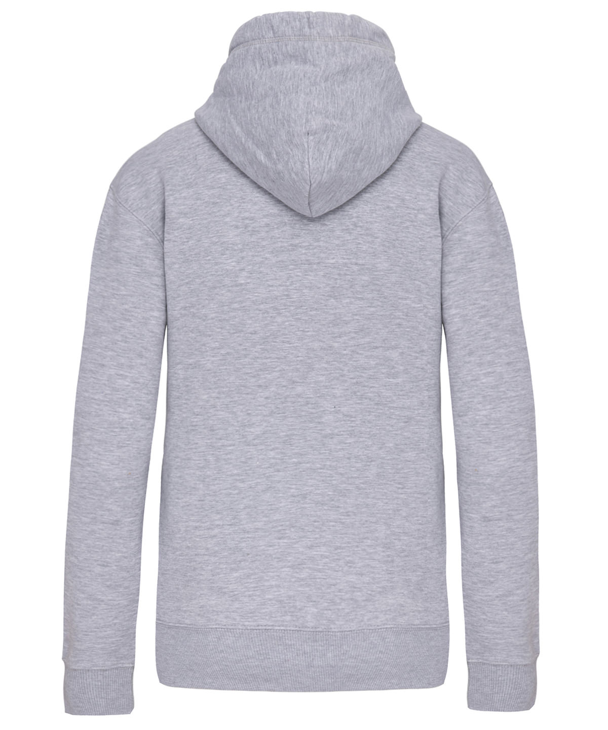 80% combed cotton/20% LSF polyester. Low shrinkage brushed fleece. Silicone wash. Contrast neck tape. Heather Grey inner hood for all colours, except for Oxford Grey body where inner hood is Dark Grey. Kangaroo pocket. Ribbed cuffs and waistband. Certified STANDARD 100 by OEKO-TEX Nー CQ 1007/8, IFTH.