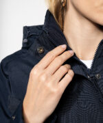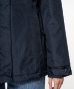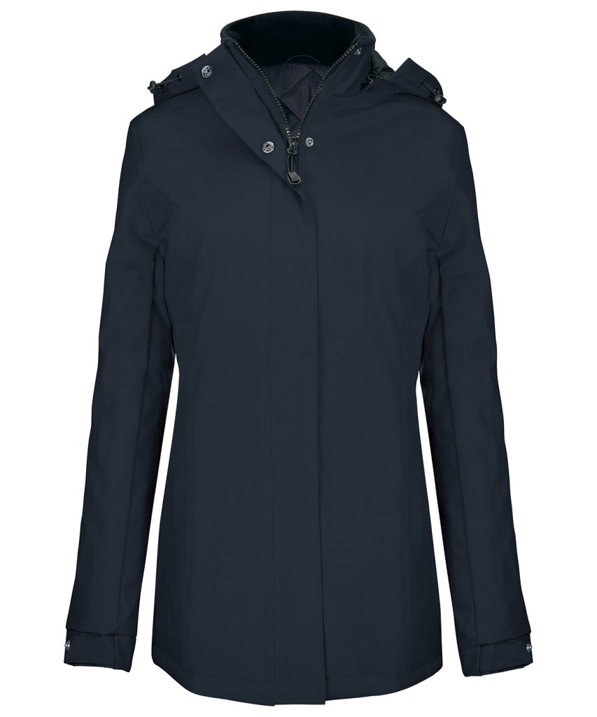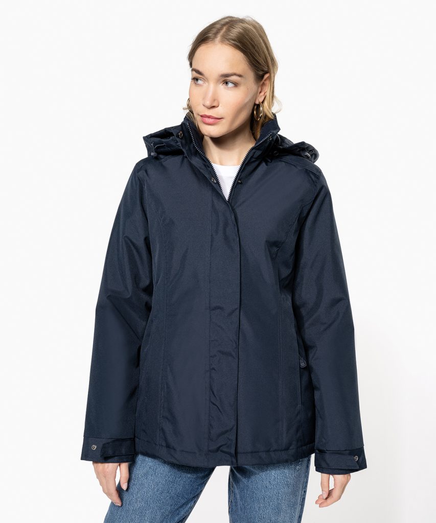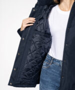 Outer: 100% polyester Oxford. Inner: quilted polyester. Zip fastening with invisible tab and press studs. 2 zipped outside pockets. 1 inside pocket. Detachable hood. Fleece-lined collar. Zip access for decoration.