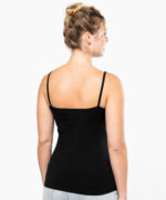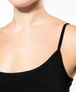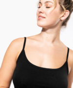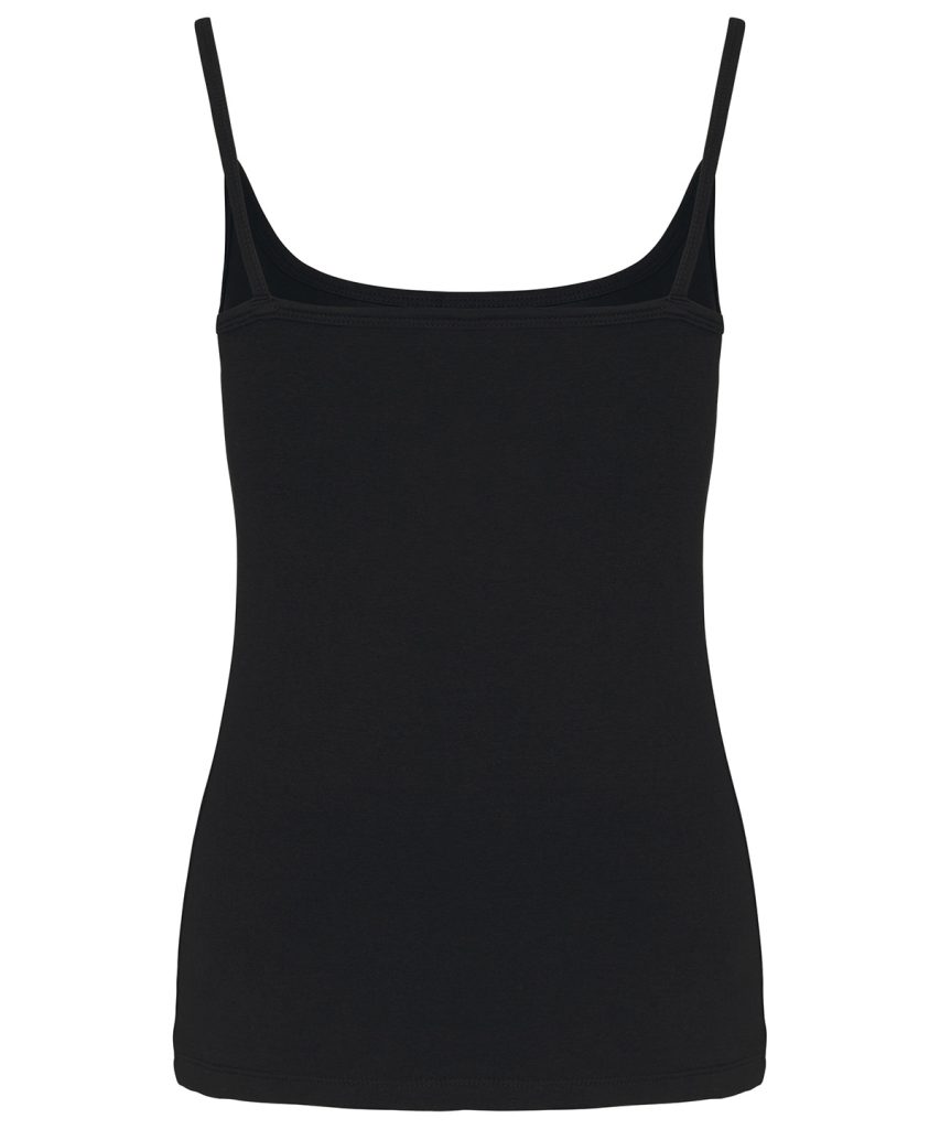 95% cotton / 5% elastane. Jersey knit fabric in combed cotton. Fine straps and feminine fit. Piping at the neckline and twin needle finish at hem. Certified STANDARD 100 by OEKO-TEXNー CQ1007/7, IFTH.