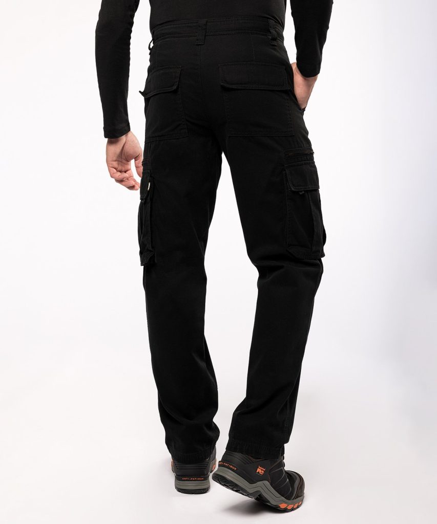 100% cotton. Zip and button fastening. 2 side pockets. 2 zipped piped pockets. 2 bellows pockets with tear release flap fastening. 2 rear patch pockets with tear release fastening. This product has been specially treated and appears intentionally aged. This manufacturing process results in colour variations between products and makes each piece unique.