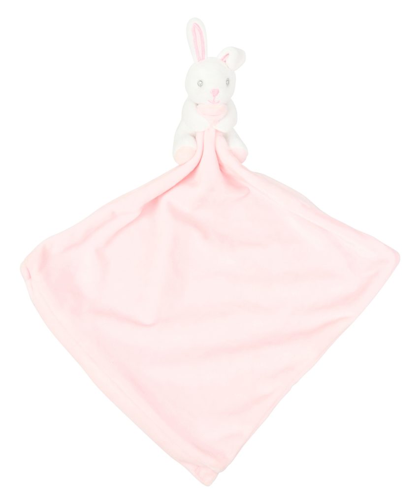 This lovely soft plush rabbit comforter is a perfect gift for any newborn baby or small child. It has a double layered blanket with access for decoration and an internal rattle. It is available in Blue Bear and Pink Rabbit colour options. Complies with EN71 European Toy Safety regulations. Remove all hang tags and their fasteners before giving these items to a child. Suitable for all ages.