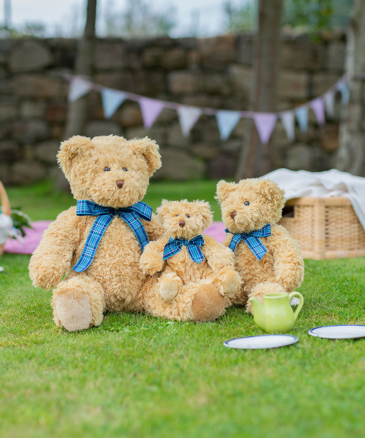 Join the teddy bear’s picnic with the Bracken bear, with light brown coloured fur and accessorised with a charming blue tartan ribbon.