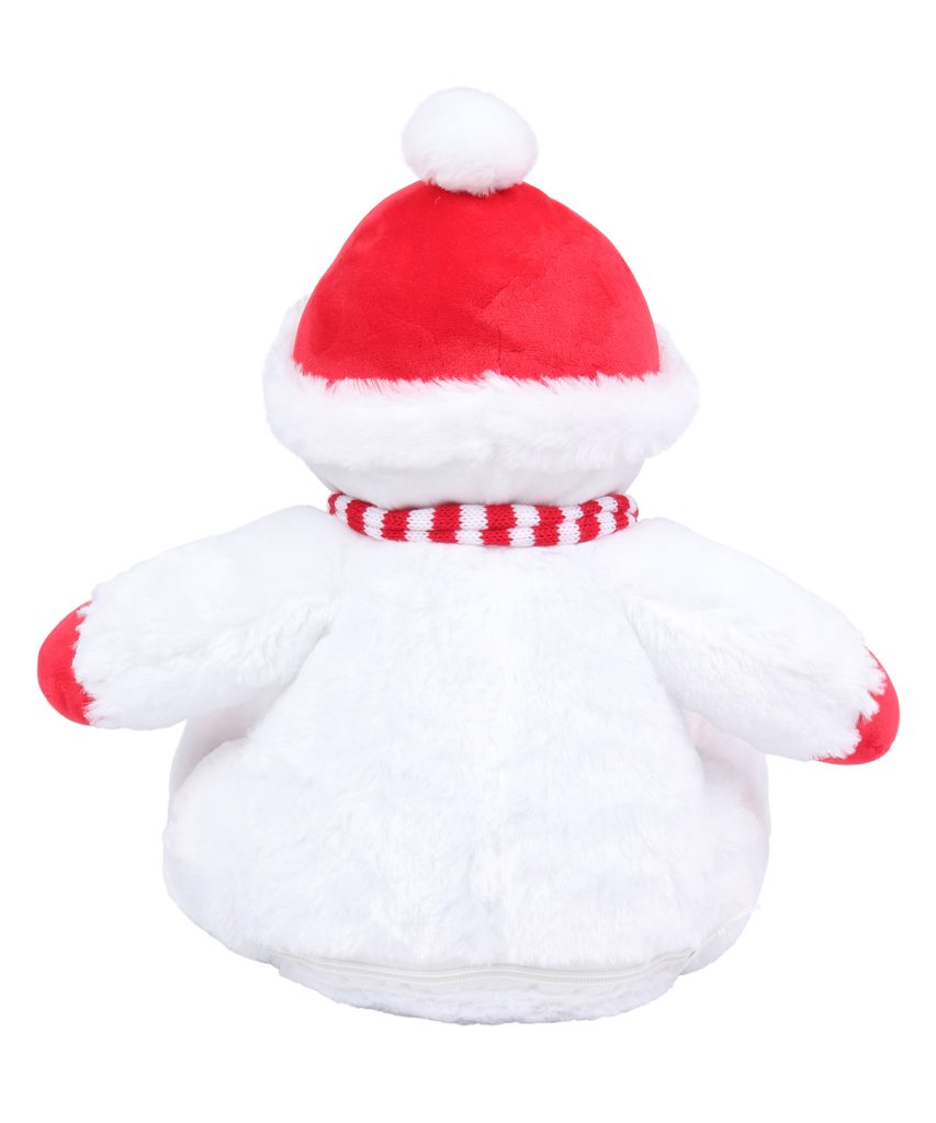 Take the chill off with a snowy cuddle off our Zippie snowman. Wrapped up with a stripy knitted scarf, festive bobble hat and soft-carrot nose. Designed with zip access around the base for direct decoration access.