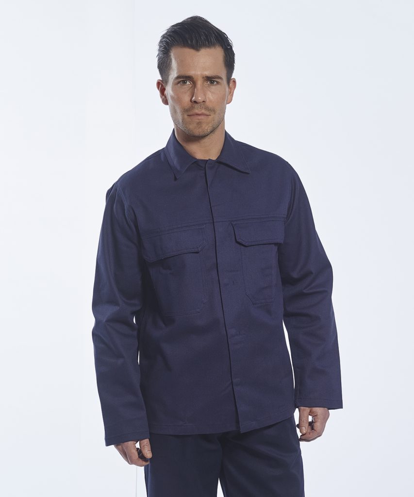 The Bizweld Jacket provides the wearer with all day protection and comfort. Features include secure stud fasteners down the front and two chest pockets with flaps. This flame resistant jacket also includes a concealed mobile phone pocket.