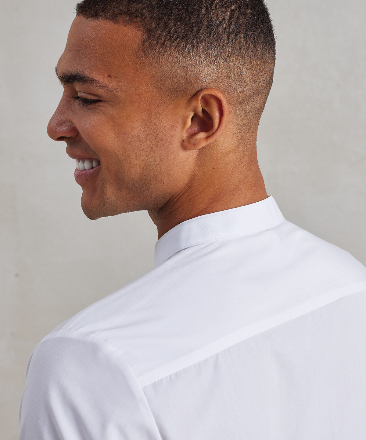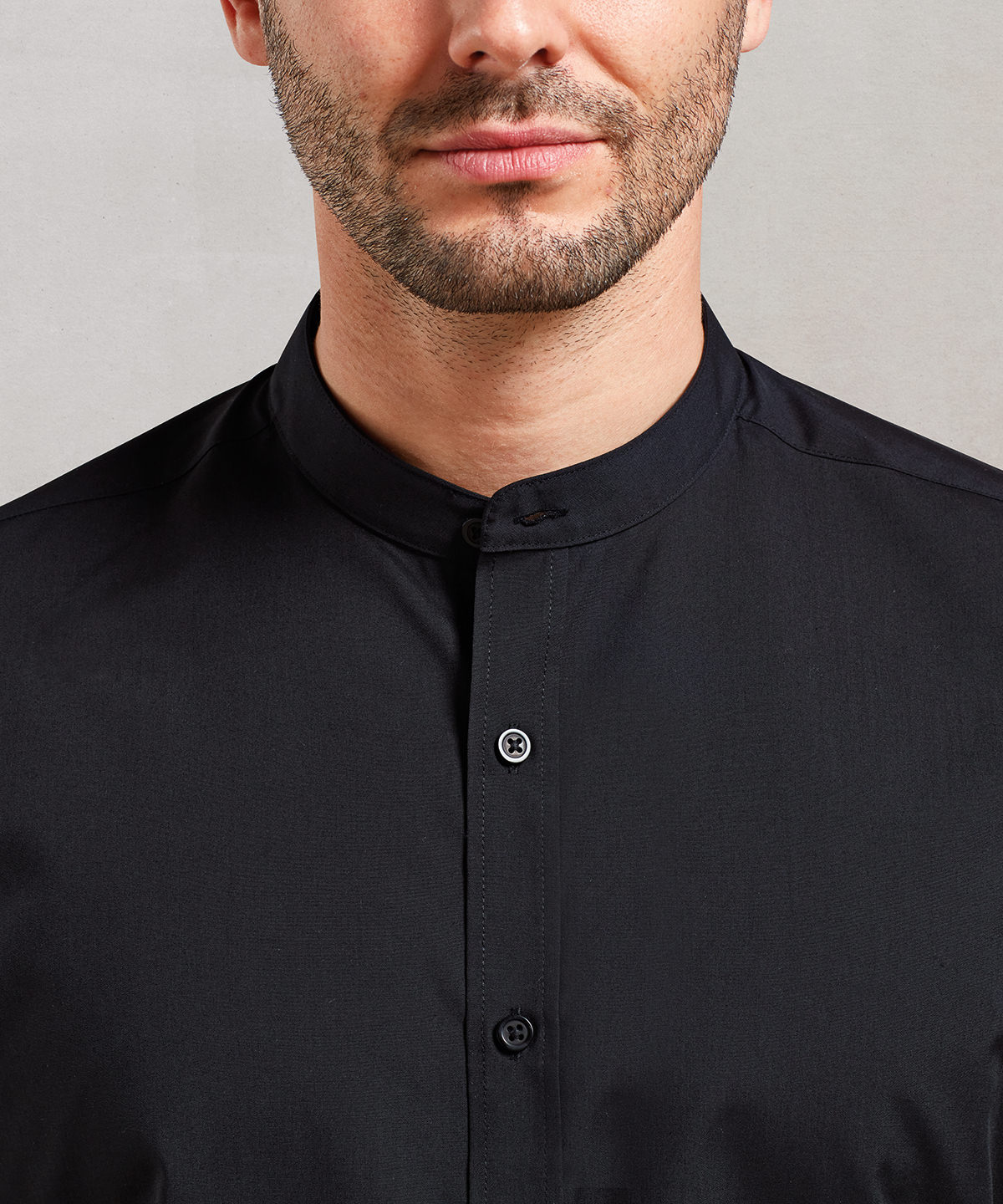 This iconic shirt is a welcome addition to the Hospitalitywear collection and is a popular style worn at the front-of-house. The distinctive collar features a narrow banded fabric strip that runs around the neck and fastens at the front with a top button. Double buttons to the cuff and a sleeve guard allows for a more casual roll-back option on the arm. Styled to be unisex so everyone can introduce this trendy yet timeless piece into their teamwear.