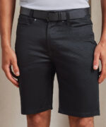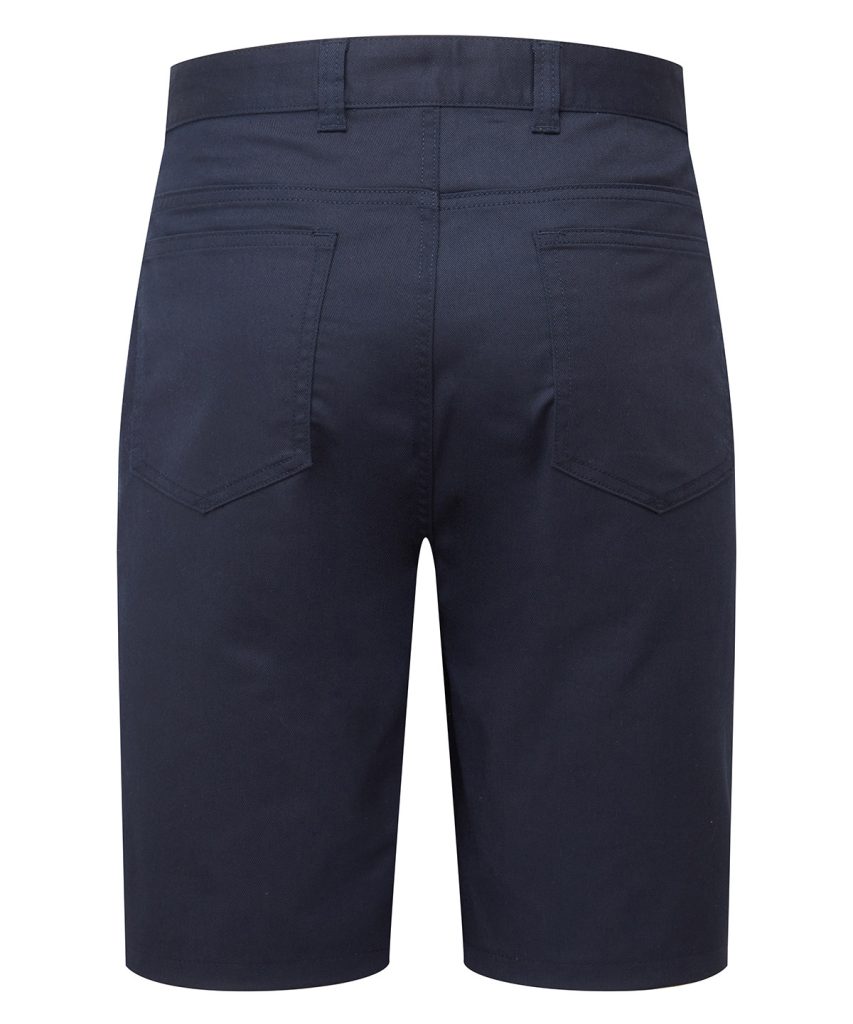 Based on the popular chino jeans, these mens chino shorts are styled with a covered zip fly fastening and button to the waistband. There are loops on the waistband to facilitate a belt, two side pockets with rivet detail and two patch pockets to the reverse. Finished with a double turned hem, they are a great option for the warmer months and offer a more casual and playful approach to corporate dressing. A touch of elastane through the fabric provides an element of stretch for maximum comfort.
