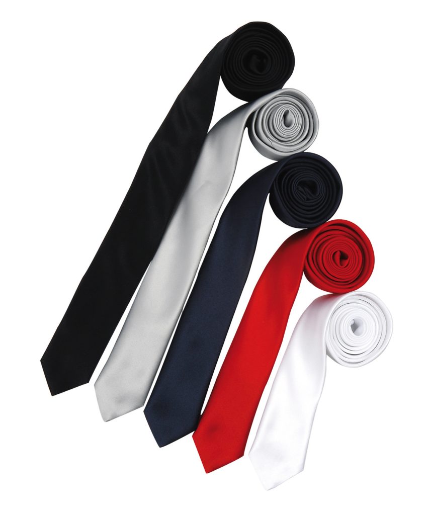 A wardrobe essential for the modern businessman, this popular slim-line tie has a blade width of just 5cm. Available in five colours with a satin look and feel for a fashionable look in the office.