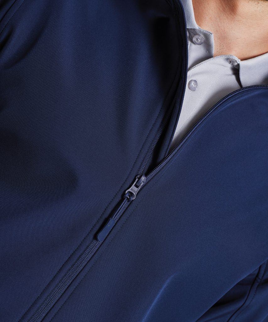 A mens two-layer softshell jacket carrying Premiers Windchecker trademark for wind and water resistance through the fabric. Made with 100% recycled polyester with a bonded fleece inner layer, this zip-through softshell jacket features hook and loop strips to the cuffs for adjustment around the wrist. There are two handy zipped side pockets and an elasticated drawcord hem for fit. A great versatile outer layer for casual and corporate dressing for men.