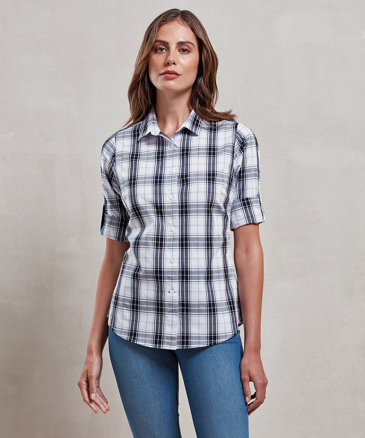 Premier – Womens Ginmill Check Cotton Long Sleeve Shirt PR354