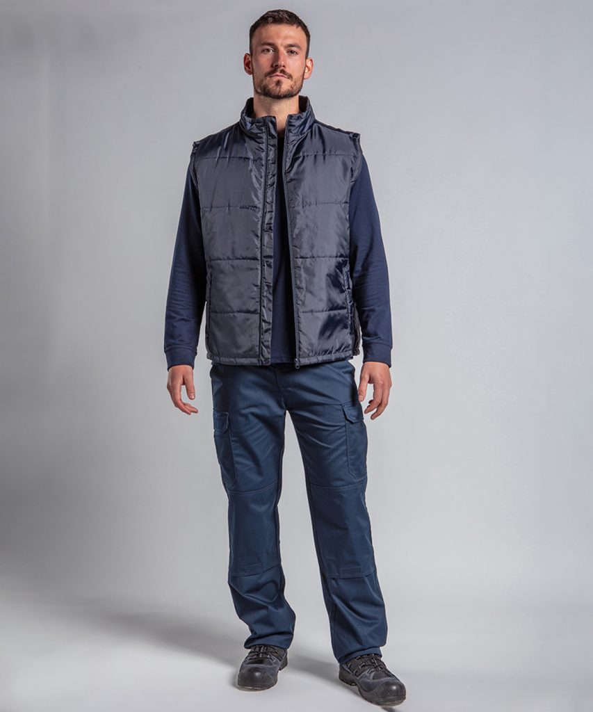 Ideal for layering, the Pro body warmer works with anything from a polo to a fleece. Quilted for extra padding and warmth, this has side zip pockets, a funnel collar and dropped back hem for comfort whilst working.