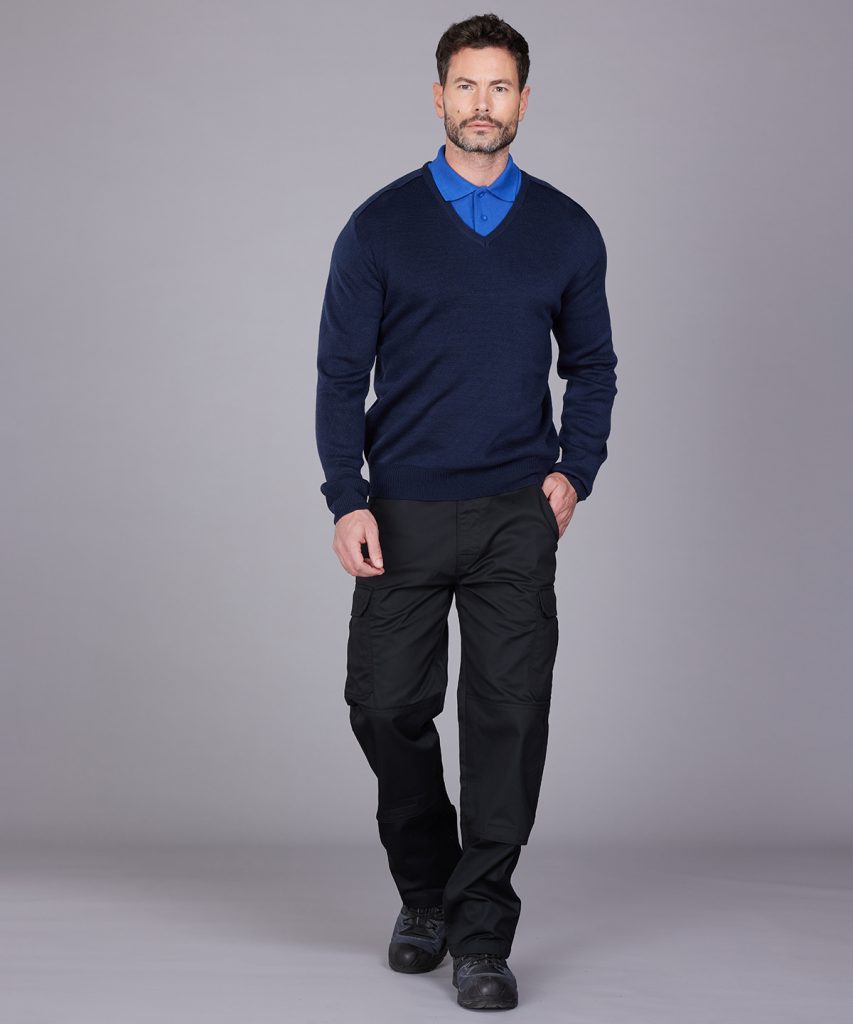 The Pro sweater is a staple workwear item. Designed with a v-neck and set-in-sleeve and finished with knitted saddle shoulders for extra durability, it’s smart style makes it extremely versatile for all workwear needs.