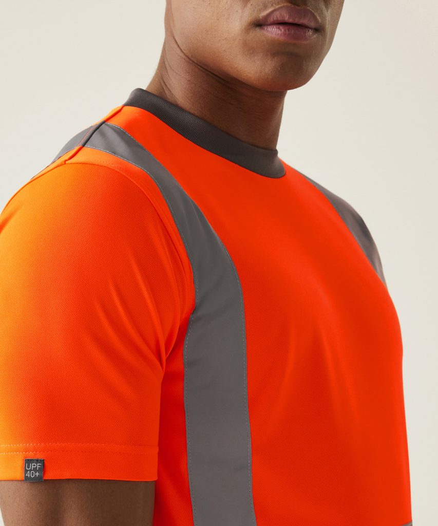 The Hi-vis Pro contract t-shirt from Regatta Professional is the epitome of versatility and style. This high-visibility shirt keeps you cool with its lightweight fabric, boasts UPF 40+ protection and comes with good wicking performance to keep you fresh. Strategically positioned hi-vis strips enhance your visibility.