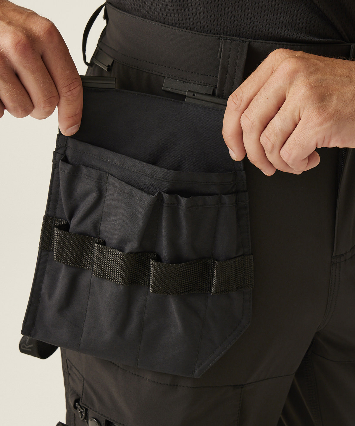 The Hi-Vis X-Pro Stretch holster trousers (Class 1) from Regatta Professional are a fusion of protective, hi-tech and unparalleled comfort. These meticulously crafted trousers embody a design-led approach, seamlessly blending style with functionality. Constructed from 4-way stretch and water-repellent fabric, they guarantee unmatched comfort, while the laser-cut design at the back knee enhances breathability during strenuous tasks. These work trousers will stand the test of time with their Cordura fabric top-loading kneepad pockets. They feature a hammer loop and 15-strategically placed pockets for tools and an ID holder, while fluorescent fabric keeps you visible in low-light settings.