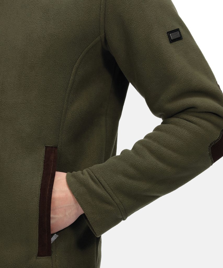 The Faversham full-zip fleece from Regatta Professional. With a country feel, strategic overlays and heavyweight fleece, this is perfect for staying warm in style. It features a cosy warm-backed fleece and durable heavyweight construction that will keep you warm, protected and on trend and perfect for working on the farm or country estate. Valuables are kept safe in the zipped pockets, the corduroy shoulder adds style, and elbow overlay panels provide lasting wear.