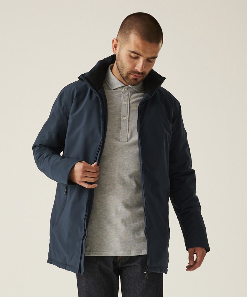 The mens Hampton executive jacket from Regatta Professional will keep you protected when work takes you outdoors. Made with protective, waterproof, Hydrafort fabric to keep rain at bay, theres also Warmloft insulation too to keep you warm and a luxury quilted lining for comfort.