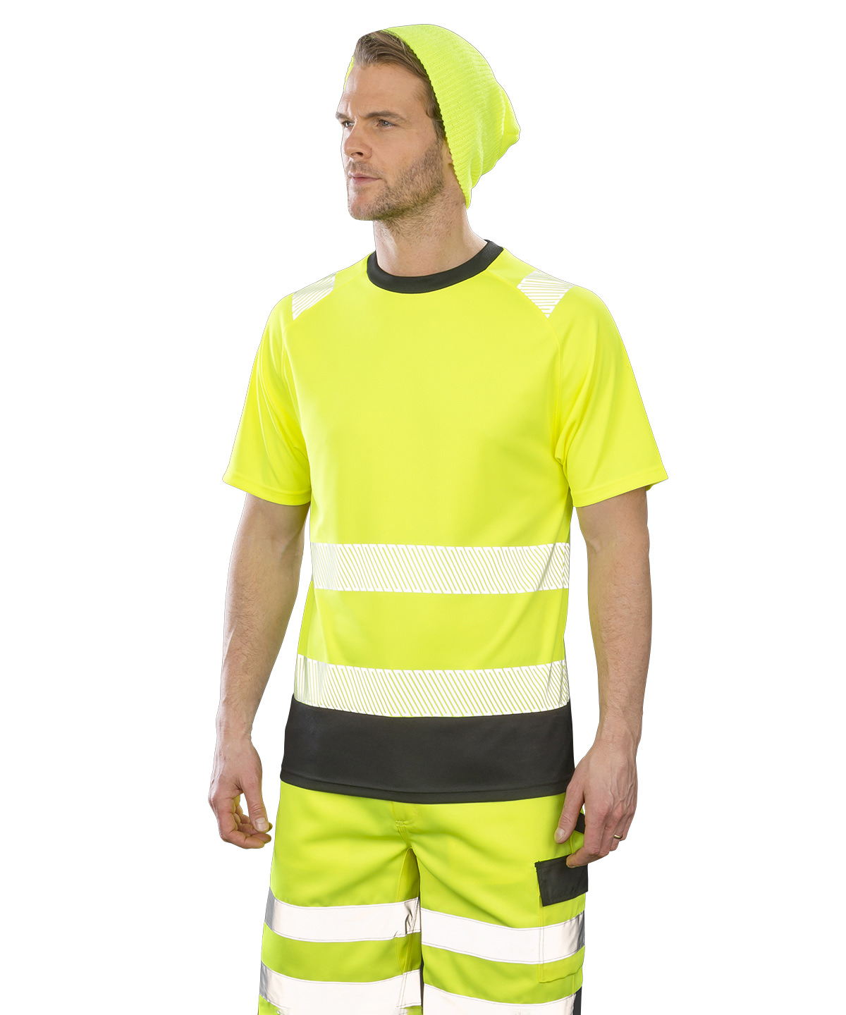 Cool and breathable, an eye-catching and comfortable, safety T-shirt in recycled, soft textured fabric with Hi Tech Stretch.