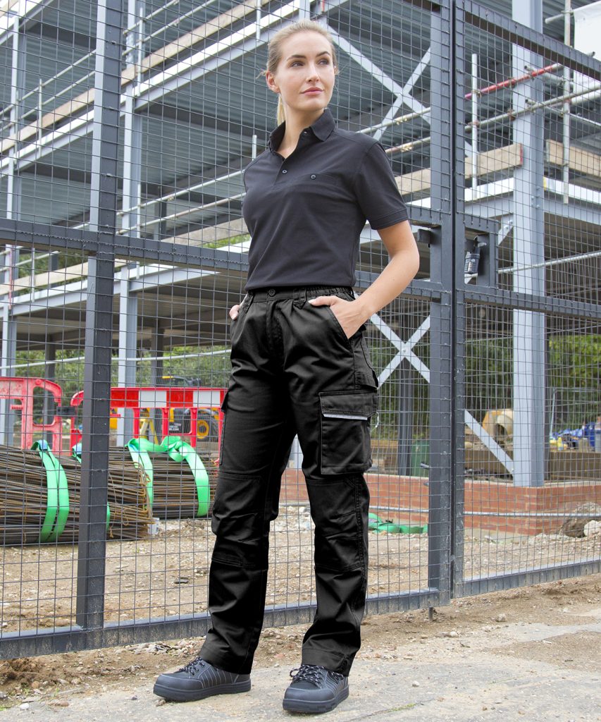 Comfort fitting women’s action trouser with expansion waitband for adjustable fit and draught protection.